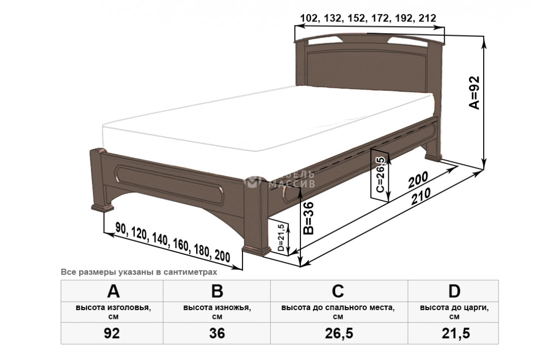 Прочная кровать Лаура сделана из экологически чистого древесного массива. Модель имеет чуть изогнутое изголовье с двумя продолговатыми отверстиями и крепкий каркас с устойчивыми ножками. Изделие, которое можно купить по выгодной цене в нашем интернет-магазине, представлено в различных комплектациях. Осуществляется доставка на дом по Альметьевску и Республике Татарстан.| Размер | Цена | |